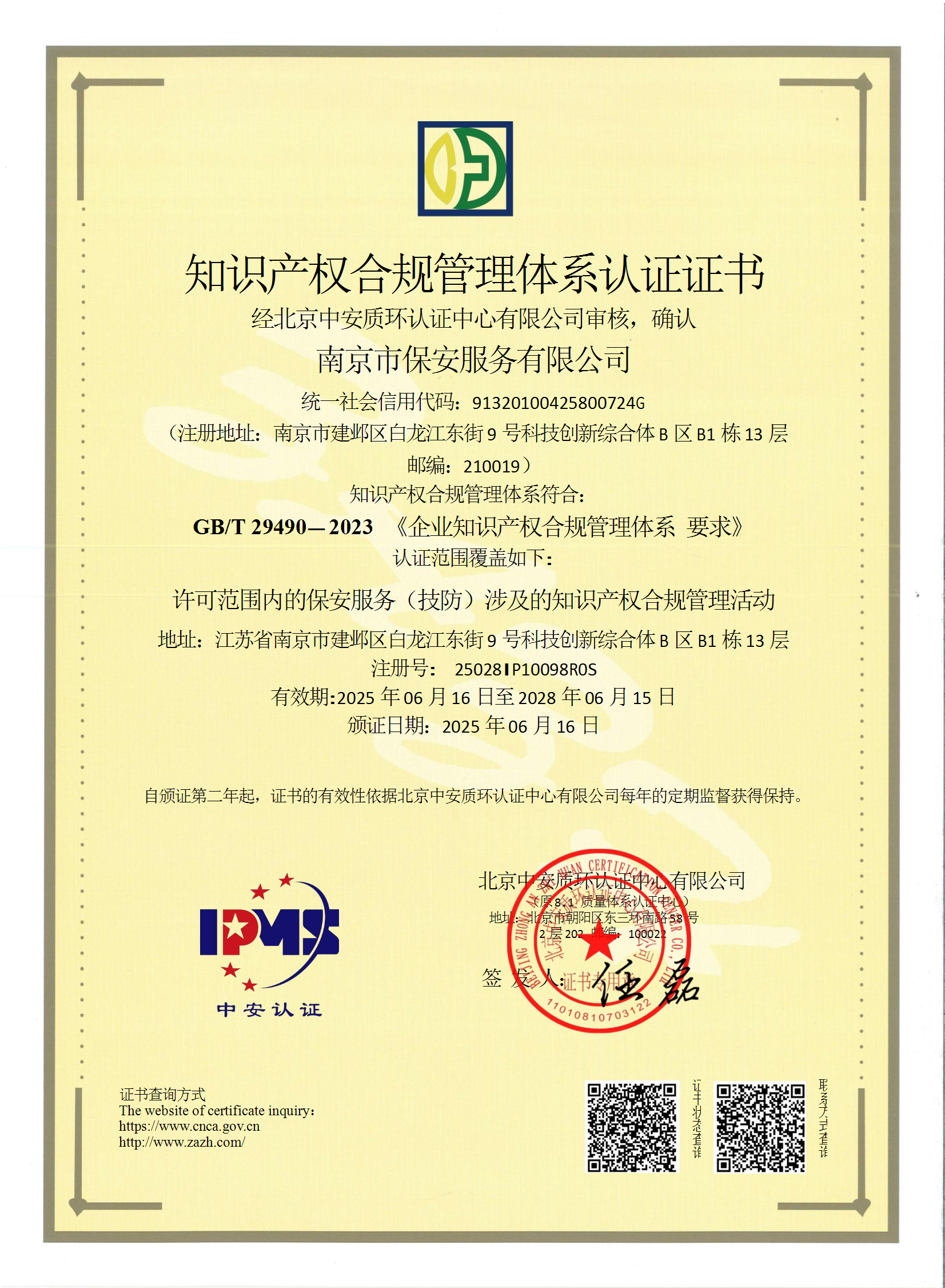 知識(shí)產(chǎn)權(quán)合規(guī)管理體系認(rèn)證證書(shū)